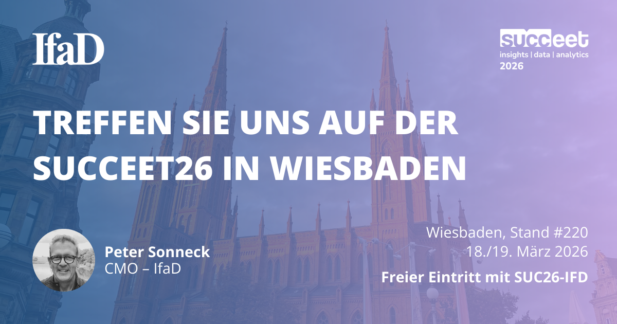 IfaD ist das Institut für angewandte Datenanalyse in Hamburg, gegründet 1976. Wir bieten Projektmanagement und Software für Datenanalyse, Datenerhebung und Datenauswertung in der Marktforschung – auf dem neuesten Stand von Wissenschaft und Technik. Als Dienstleister für Marktforschung und Marketing-Professionals verbinden wir wissenschaftliches Denken mit praktischer Umsetzung.